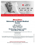 The American Red Cross will host a blood drive at The University of Toledo Medical Center Wednesday, Aug. 1, from 9:30 a.m. to 3:30 p.m.
