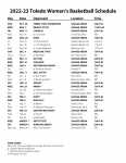 The Toledo women’s basketball team’s 2022-23 schedule is complete with the release of its Mid-American Conference slate by the league office. The Rockets’ challenging non-conference schedule will be complemented by an 18-game […]