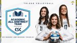 Three members of the Toledo women’s volleyball team have been named to the College Sports Communicators’ (CSC) Academic All-District squad.